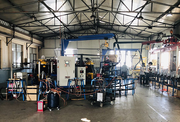 聚氨酯發(fā)泡機本身是不能憑空產(chǎn)出泡沫來的,它是將空氣引入發(fā)泡劑水溶液中均勻分散,實現(xiàn)液氣盡可能大的接觸面,以使發(fā)泡劑中的表面活性物在液膜表面形成雙電層并包圍空氣,形成一個個氣泡